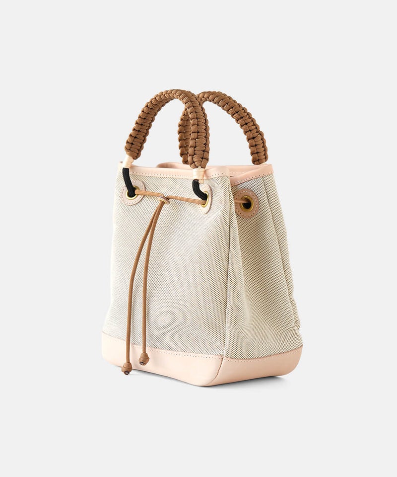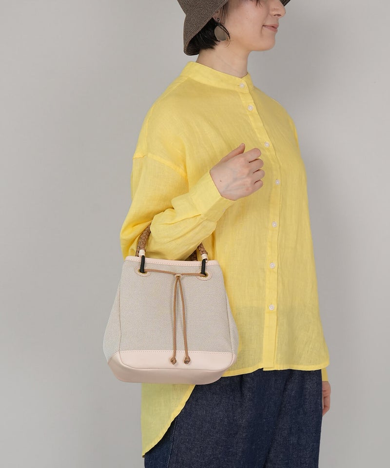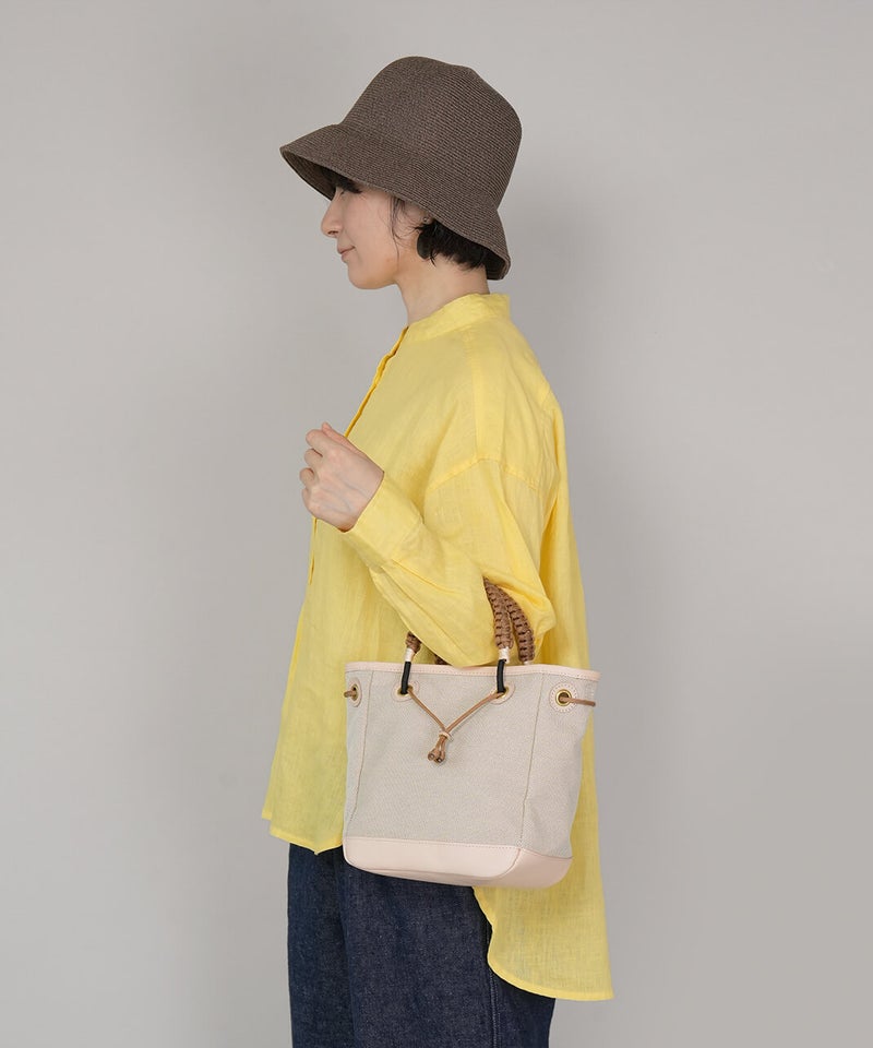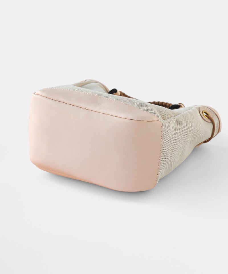 秋冬の定番コレクションのTANKERシリーズを春夏素材で登場しました。ハリのあるコットンキャンバスとパイピングやハトメの台座、底部分の切り返しにもヌメ革をふんだんに使用し春夏でも上品さとカジュアルさを併せ持つデザインに仕上がっています。従来のTANKERコレクションよりも軽量となり素材と全体の色味の爽やかさもあるのでナチュラルな装いにもより取り入れやすいアイテムになります。