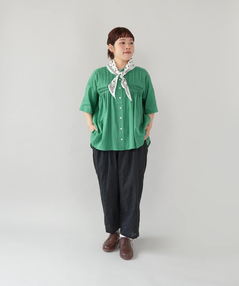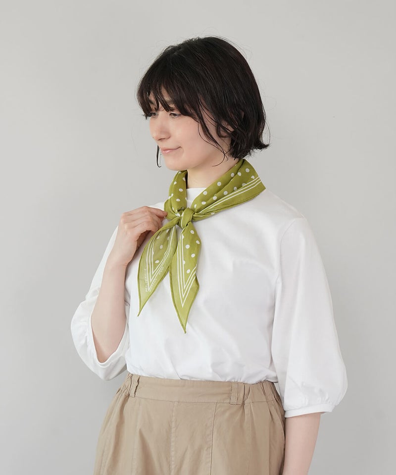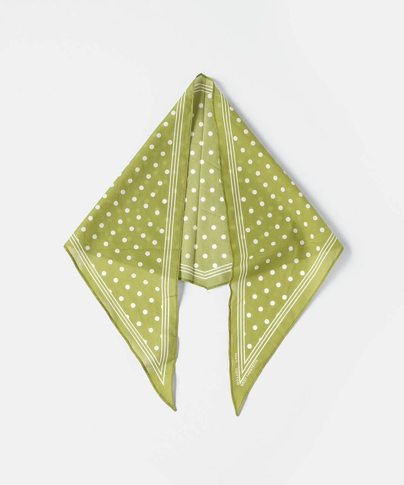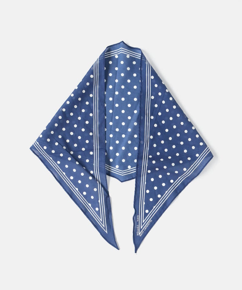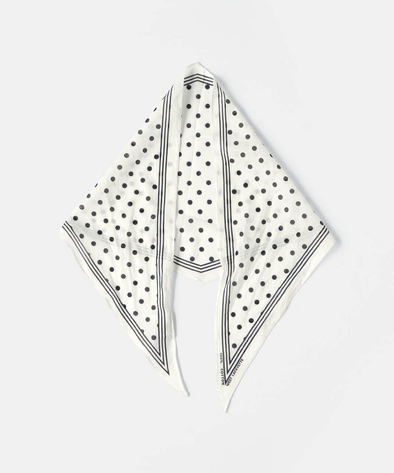 ひし形シルエットが印象的なスカーフ。かさばらず気軽に取り入れることができます。ドット柄はシンプルなスタイルに、コーディネートのポイントとして活躍してくれます。