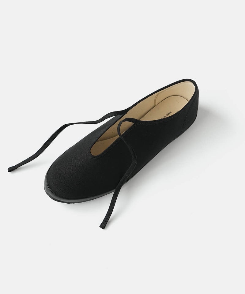 1枚もののアッパーに履口のパイピングを靴紐にしたシンプルな一足。着脱も楽にでき、フィット感があるので履き心地も快適です。上品で柔らかなフォルムに蝶結びがアクセントになっています。