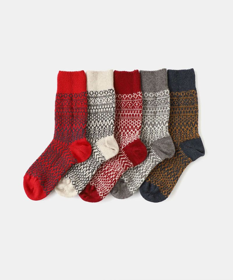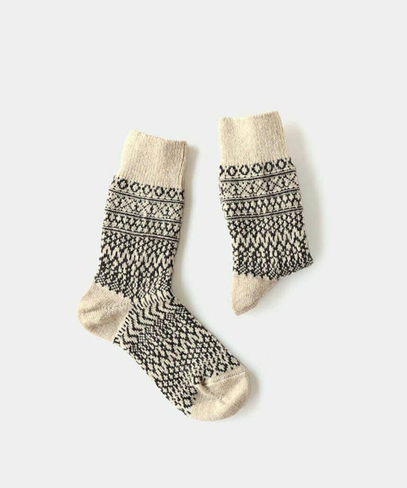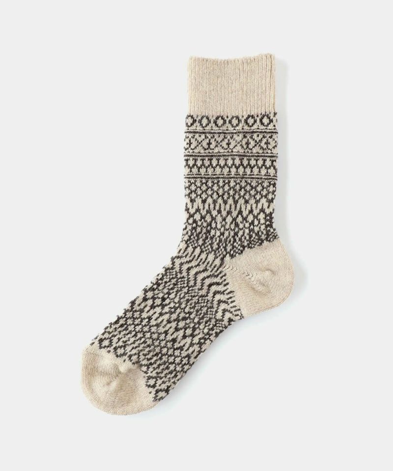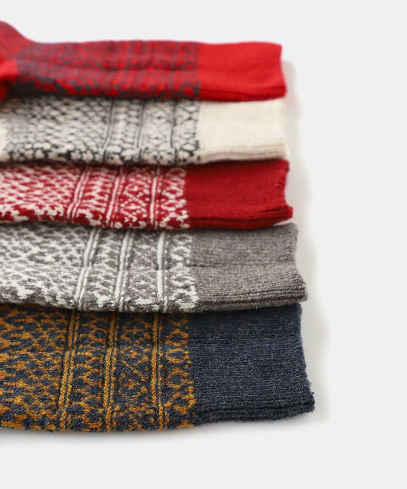 縮みにくく柔らかいのが特徴的な「防縮ウール」を使用した「ウールジャガードソックス」です。 ふくらみのある「防縮ウール」をしっかりと編み上げているので、どっしりとした履き心地で、とても温く仕上がっています。 洗濯を重ねても、縮みにくい設計なので、寒い冬場に、繰り返し履いていただけます。
