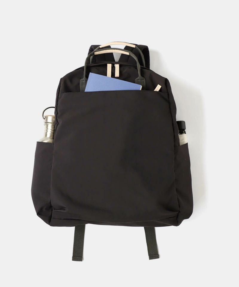 「ポケット数が多い」、「背中のポケットに財布が入れづらい」などの声をもとに、より日常生活で仕分けと収納がしやすいポケット数を考えました。 そして撥水加工ナイロンになったことで、レジャーや1泊2日の小旅行などアウトドアシーンでも安心な万能リュックです。
