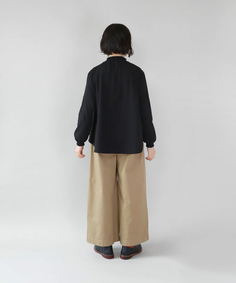 以前、こちらで後ろの首ボタンのブラウスを購入し、着心地がよくて使いやすかったので、さらに便利になったシャーリングに嬉しくなり購入しました。色も落ち着いて上品でとっても良いです。