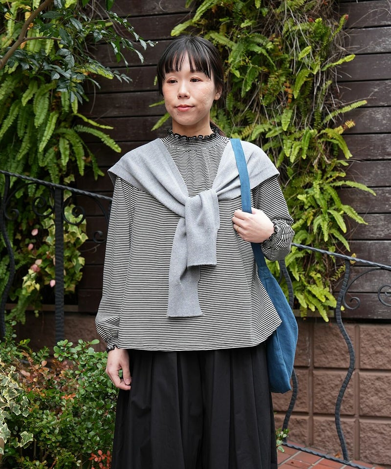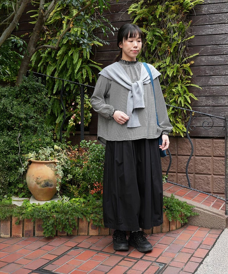 シンプルなデザインだからこそ、ボトムスやアクセサリー次第で多彩なアレンジが可能。