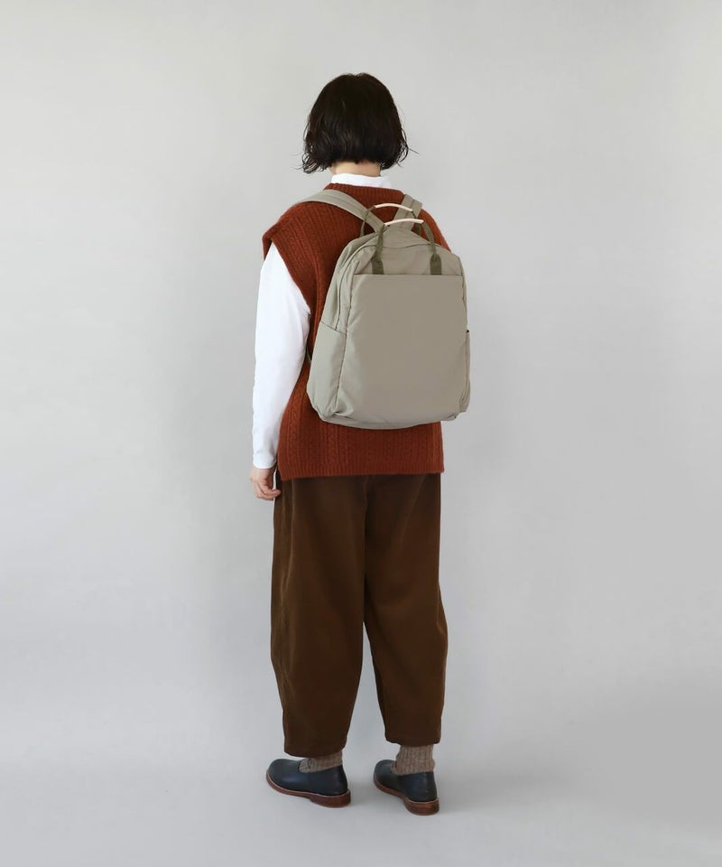 「ポケット数が多い」、「背中のポケットに財布が入れづらい」などの声をもとに、より日常生活で仕分けと収納がしやすいポケット数を考えました。 そして撥水加工ナイロンになったことで、レジャーや1泊2日の小旅行などアウトドアシーンでも安心な万能リュックです。