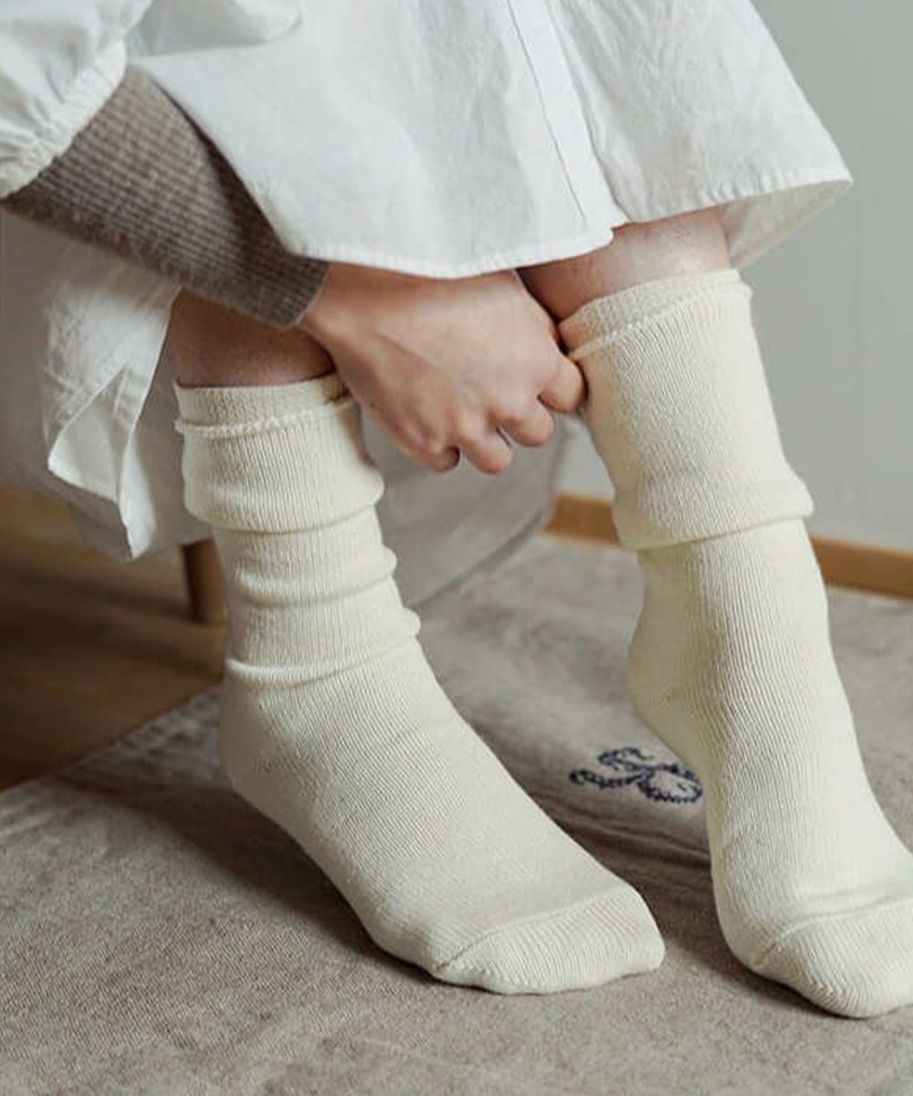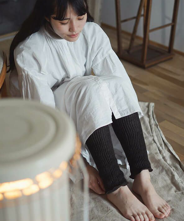 シルクは肌に最も近い素材で、しっとりとした履き心地が魅力。放湿性に優れたウールを重ねることで、汗を吸ってもベタつかず快適に過ごせます。スタッフが何度も試着を重ねて完成させた4足セットは、丈を変えて履き口が重ならないよう設計。最後のカバーソックスは全体を包み込む長めの仕様など、冷えとりを実践するスタッフの細やかな工夫が詰まっています。