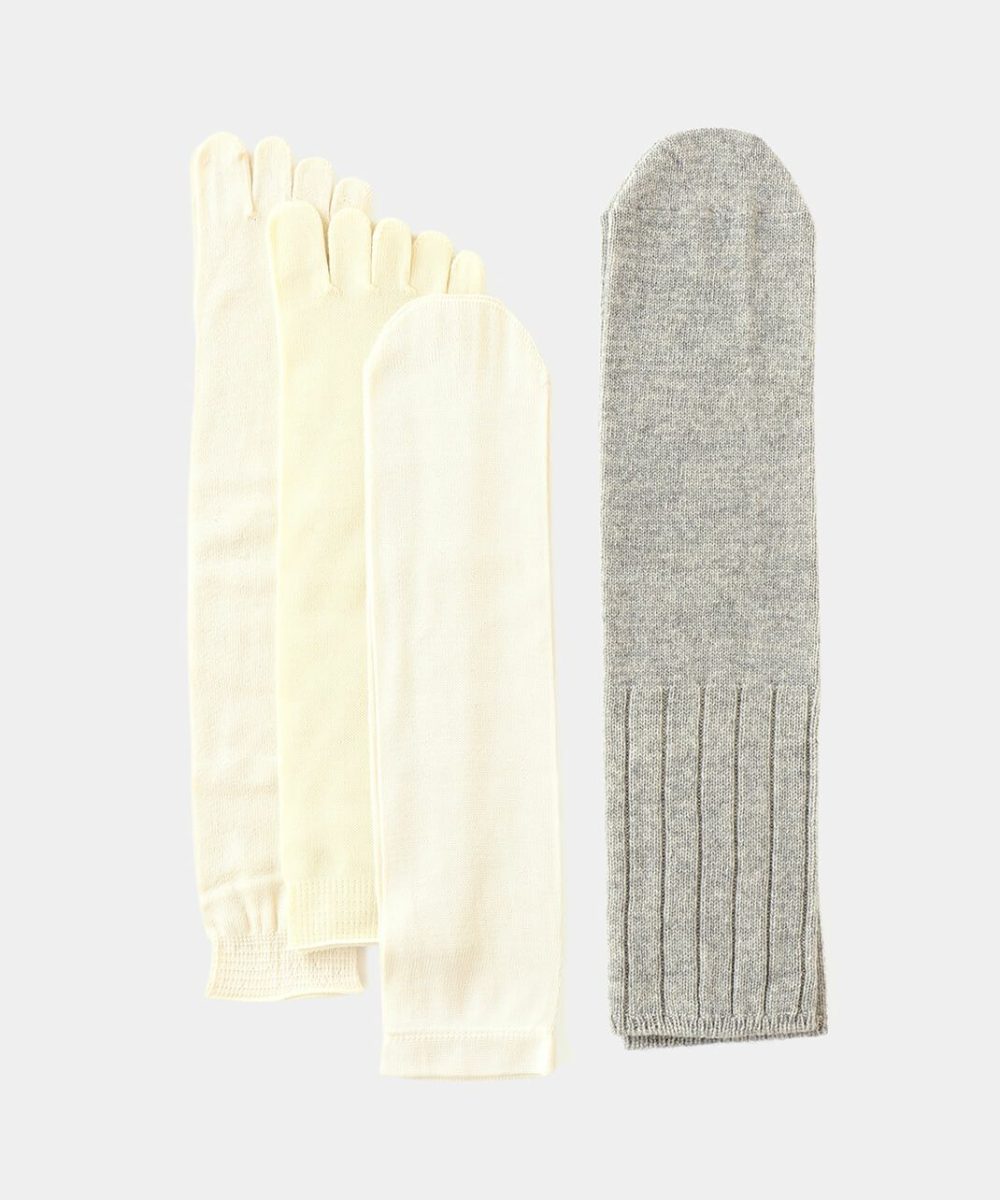 肌に触れる内側はシルク、外側は柔らかく保温性が高いウールを使用した秋冬におすすめの5本指と靴下です。シルクは汗を吸収し、しっとりしたやさしい風合いになり、外側のウールは柔らかく保温してくれます。重ねて履くことで寒い冬もより温かく過ごせます。