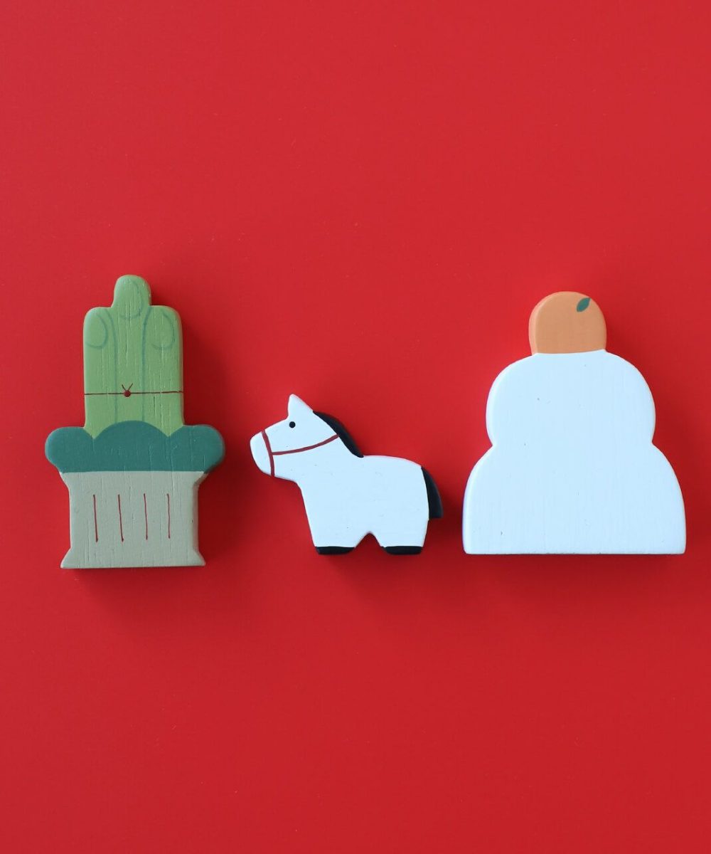 小さなスペースにも置きやすく、手軽に“新年の気配”をまとえるコモノたち。干支の置き物と組み合わせたり、玄関や棚にそっと置くだけで、年の始まりの空気をやわらかく演出してくれます。