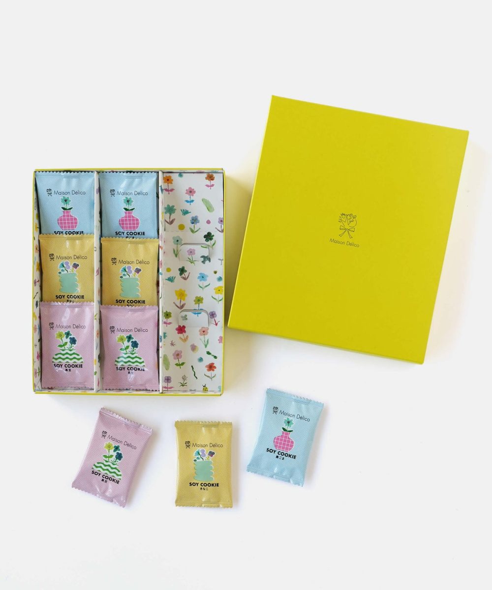 ヘーゼルナッツとビターカカオを使用した濃厚なショコラクリームと、100%国産大豆の生おからを配合したソイクッキー3種の詰め合わせ。クリームは乳製品・卵不使用、クッキーは北海道産きな粉・丹波黒豆・国産黒ごまを使用し、保存料・人工香料・着色料不使用で仕上げています。