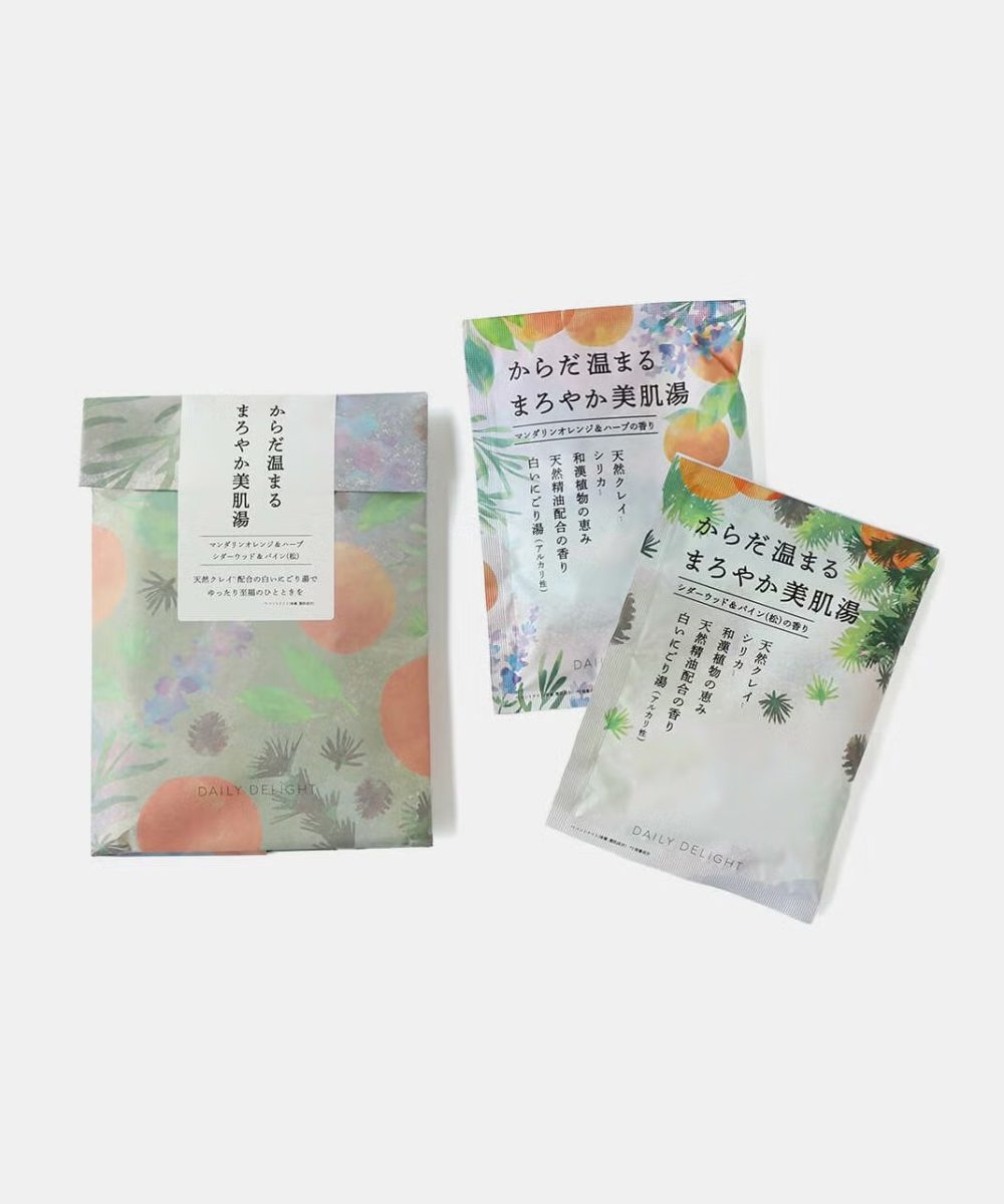 クレイ、シリカ、和漢植物を配合したやわらかなアルカリ性の美肌湯です。甘く熟れた果実にフレッシュな「マンダリンオレンジ&ハーブ」、静寂な森の空気に心洗われるような「シダーウッド&パイン(松)」の香りからお選びいただけます。自然の香りに包まれながら、至福のひとときをお愉しみいただけます。