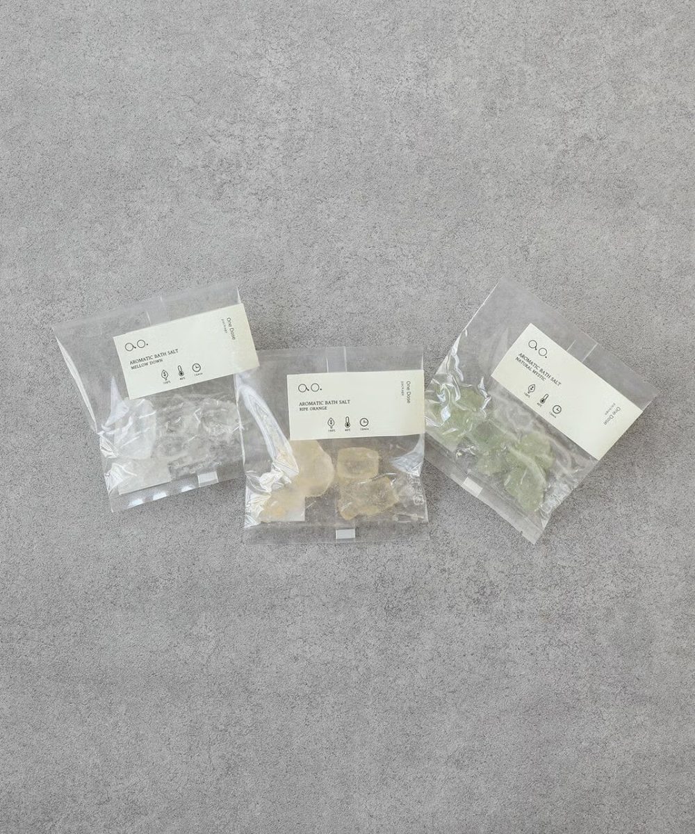 天然精油と自然由来の植物色素だけで調香、色付けした宝石のようなバスソルトです。大粒のヒマラヤ岩塩をひとつひとつ手作業でクリスタル状に。原材料を配合し、ブレンドや調合、ラベルの糊付けに至るまで一点一点、ハンドメイドにより作られています。