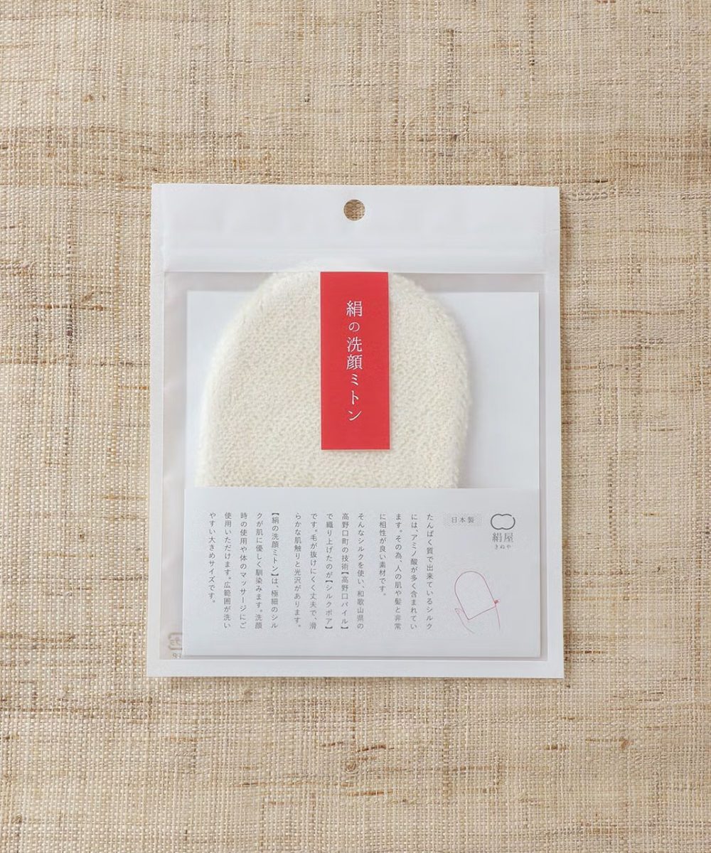 しっとり光沢のあるシルクボアを使用し、ふんわり優しい肌触りの洗顔ミトンです。できる限り肌への負担を軽減するため、肌への優しさにとことんこだわったアイテムです。
