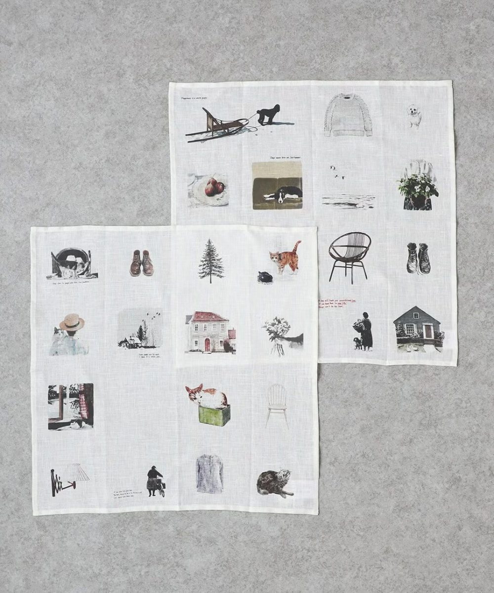 イラストレーター荻原美里さんのイラストをリネン生地にプリントしたハンカチです。静かで美しい世界観と物語が思い浮かぶような荻原さんの絵には、ずっと見ていたくなるような魅力があります。