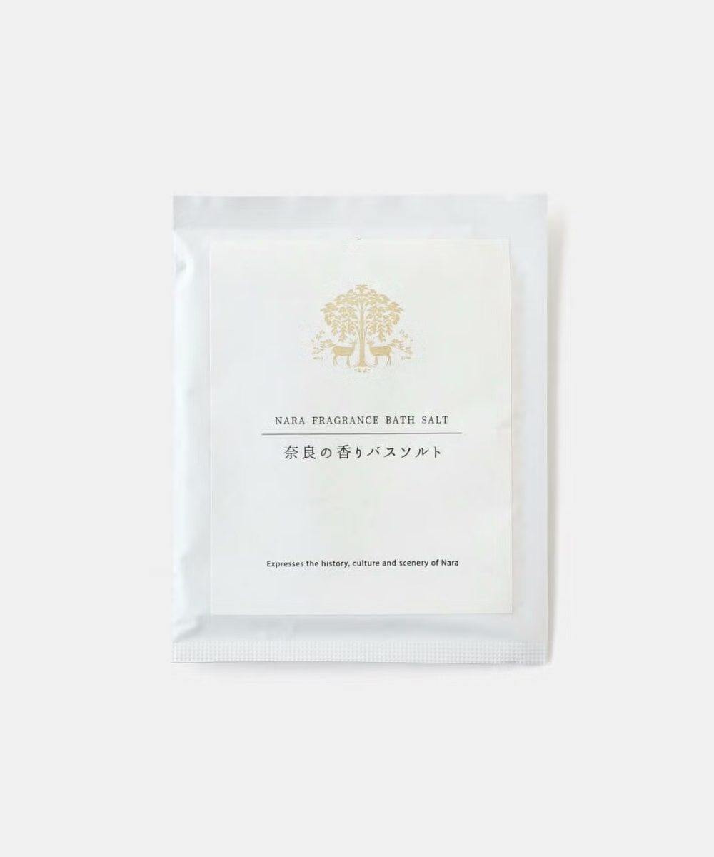 奈良の歴史、文化、風景を香りで表現した「奈良の香りバスソルト」。100%自然由来。瀬戸内海の天然塩を使用し、保存料・着色料・合成香料不使用で安全・安心。肌を健やかに保ち、湯上がりはしっとりとなめらかな潤いを与えます。