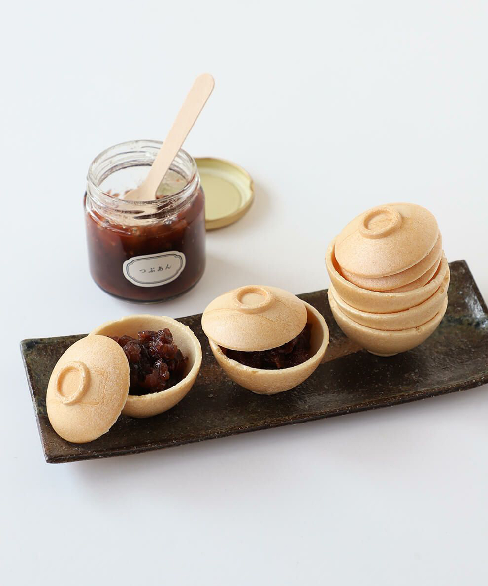 有田焼のふた付きちゃわんの形をした香ばしい最中の皮と佐賀の老舗菓子店「鶴屋」の風味豊かなつぶあんの瓶詰セットです。ちゃわんにご飯をよそうようにお好みの量の餡をよそってお召し上がりください。いつでも作り立て、サクサク状態の最中をお楽しみいただけます。餡の上にバターやナッツ、果物などを添えて、アレンジを加えてみるのもおすすめです。