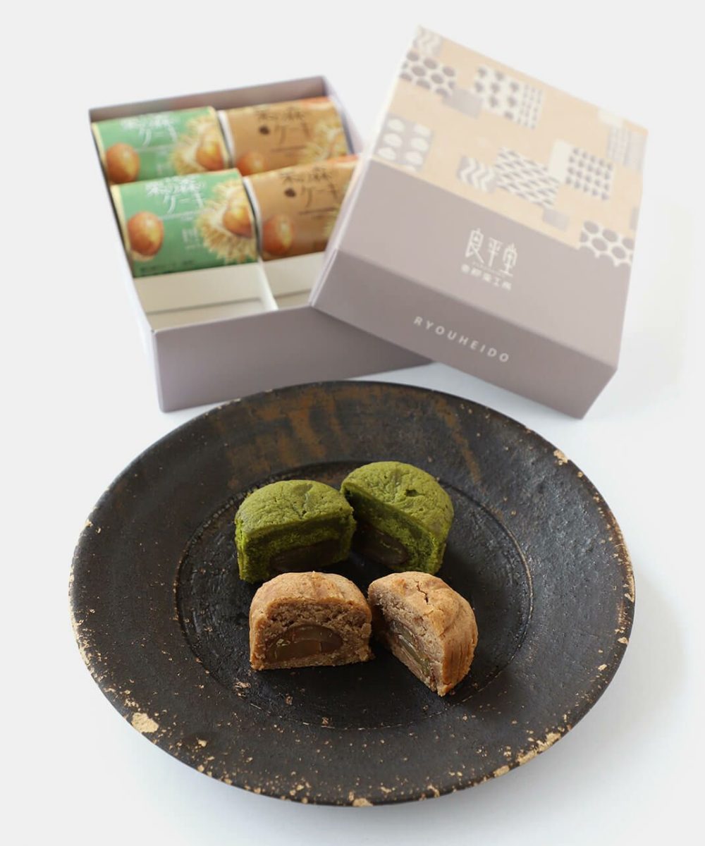 丁寧に仕上げた栗のペーストに、風味豊かな渋皮煮を贅沢に包み込んで焼き上げた「栗の森ケーキ」。小麦粉を使わずに仕立てているため、よりなめらかでしっとりとした口どけを楽しめます。定番の「栗」と、上品な香りを添える「抹茶栗」の2種類。年末年始のギフトやティータイムのおともにもぴったりです。保存期間が長く、幅広い年代に喜ばれるため、手土産にもおすすめの一品です。