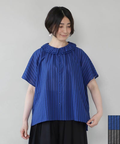 blue willowストライプのフリルブラウスのレビュー(口コミ)