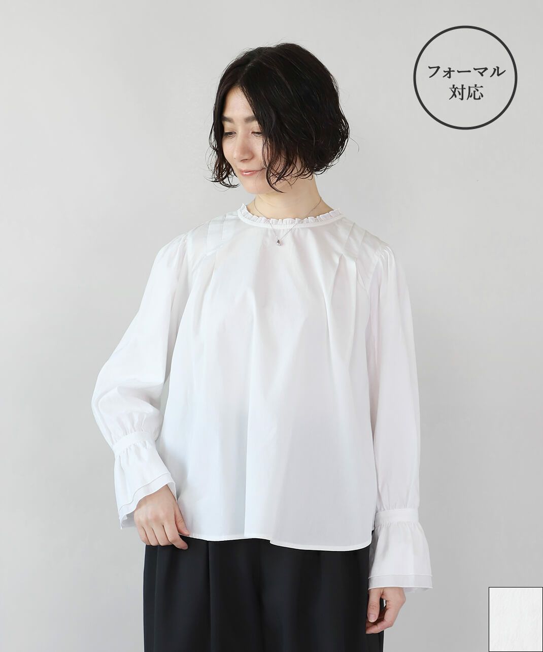 キャンディスリーブ、襟のフリルが可愛くて気に入ってます。生地は柔らかく、折りシワを直すのにスチーム掛けると簡単に戻りました。重ね着で袖口を出すと、とてもキュートになります。
