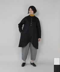 ずっと気になっていたアイテム。購入者さんのレビューがとても良いので、思いきって購入。セールになったのでライトグレーと黒を買いました。着た初日に褒められました。156センチ。丈もちょうど良く身幅はゆとりがあるので細く見えます。ちび襟が良い。襟つき苦手な私ですがすっかり気に入りました。 -