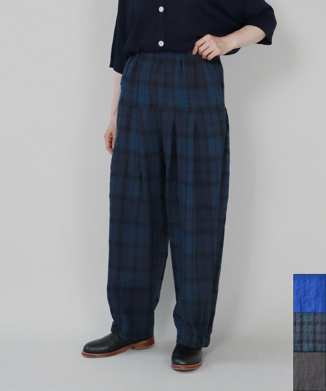 ウエストのゴムが広めでお腹腰回りとても楽です。生地が薄地で軽くて涼しい。タックから下がフワッとして可愛いです。 -