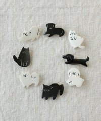 猫ちゃんの(のびをしてる子)商品は、自分用に、ポメみたいな可愛いワンちゃんは、友だち用に購入しました。水牛の角で作られているので、自然の風合いが良い感じです。バックやワンピース等、どこに付けても可愛いので、とても気に入っています。 -