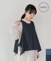 ista-ireコットンリネンデニムのサイドリボン2WAYベスト