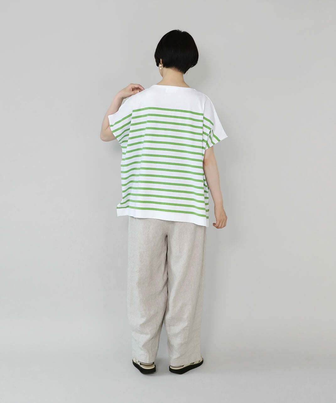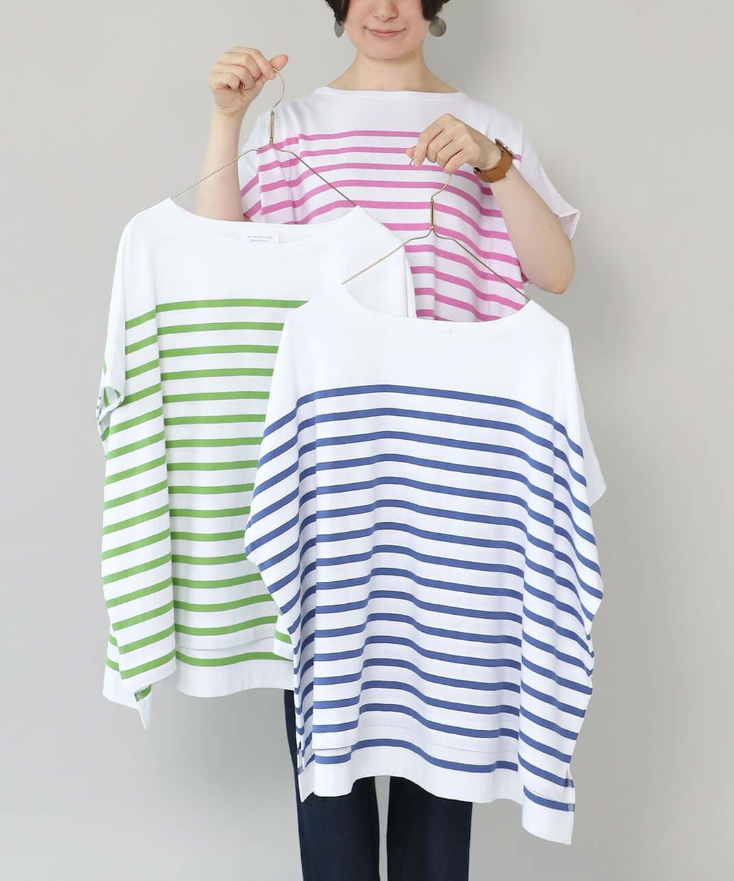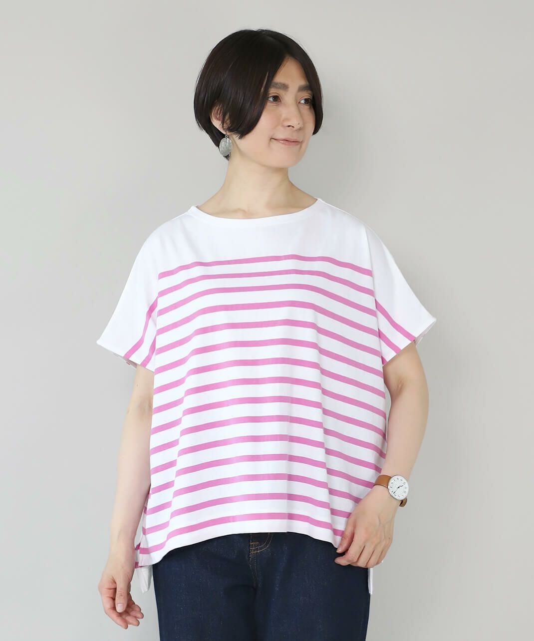ボーダーと無地のカットソー