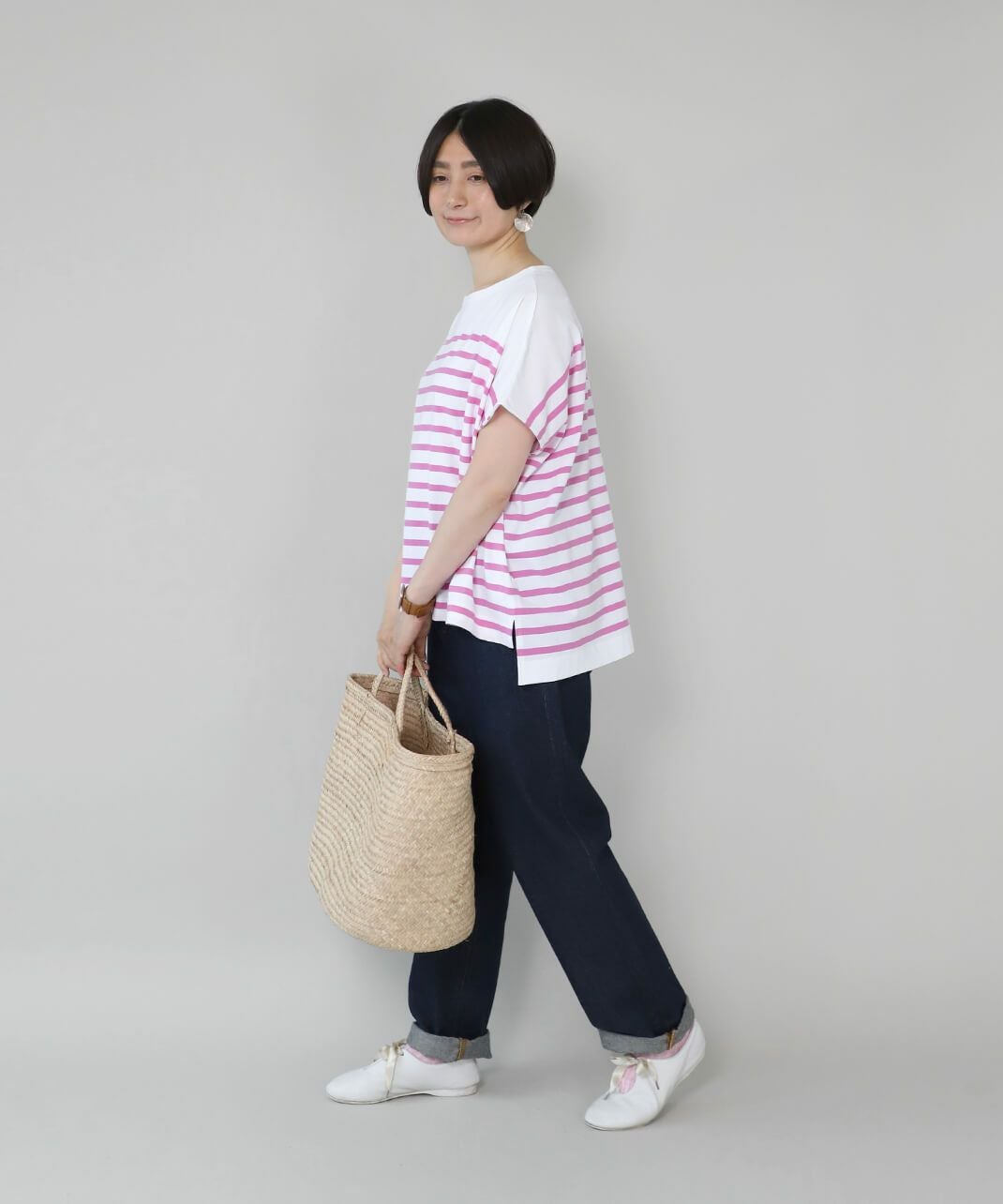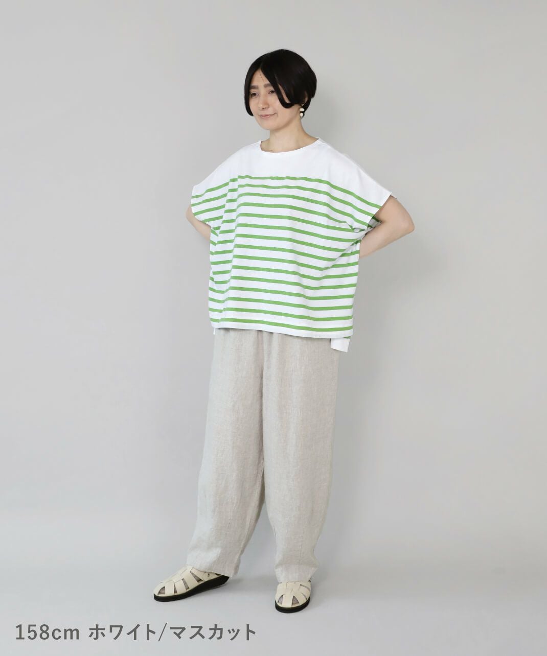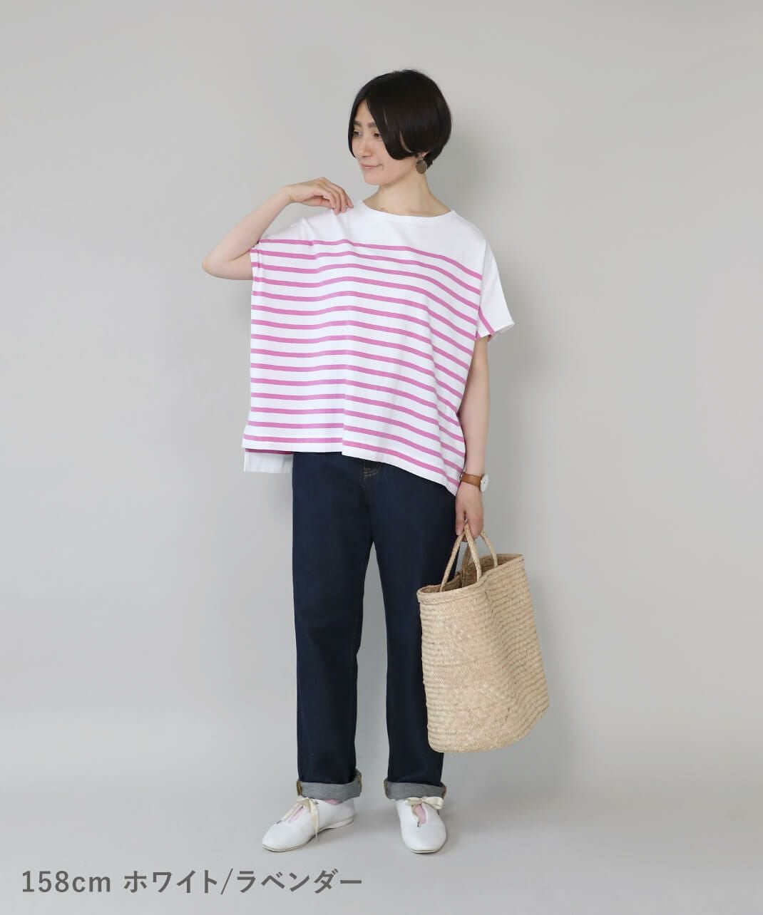 ボーダーと無地のカットソー